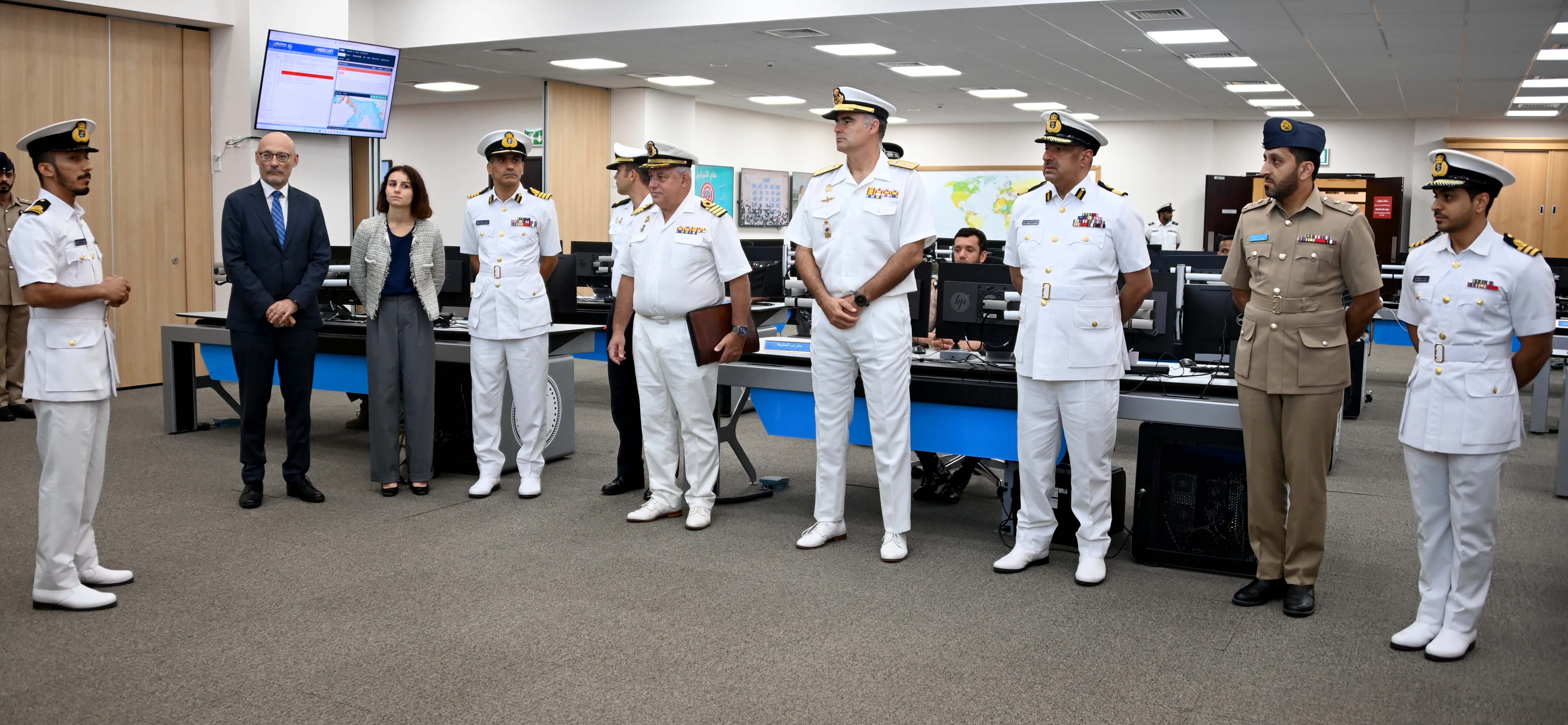 قام اليوم وفد من (عملية أتلانتا) التابعة للاتحاد الأوروبي برئاسة الفريق بحري إغناسيو فيلانوفيا قائد (عملية أتلانتا) التابعة للاتحاد الأوروبي بزيارة إلى مركز الأمن البحري، وكان في استقبال الوفد لدى وصوله مقر المركز اللواء الركن بحري سيف بن ناصر الرحبي قائد البحرية السلطانية العُمانية رئيس لجنة الأمن البحري.