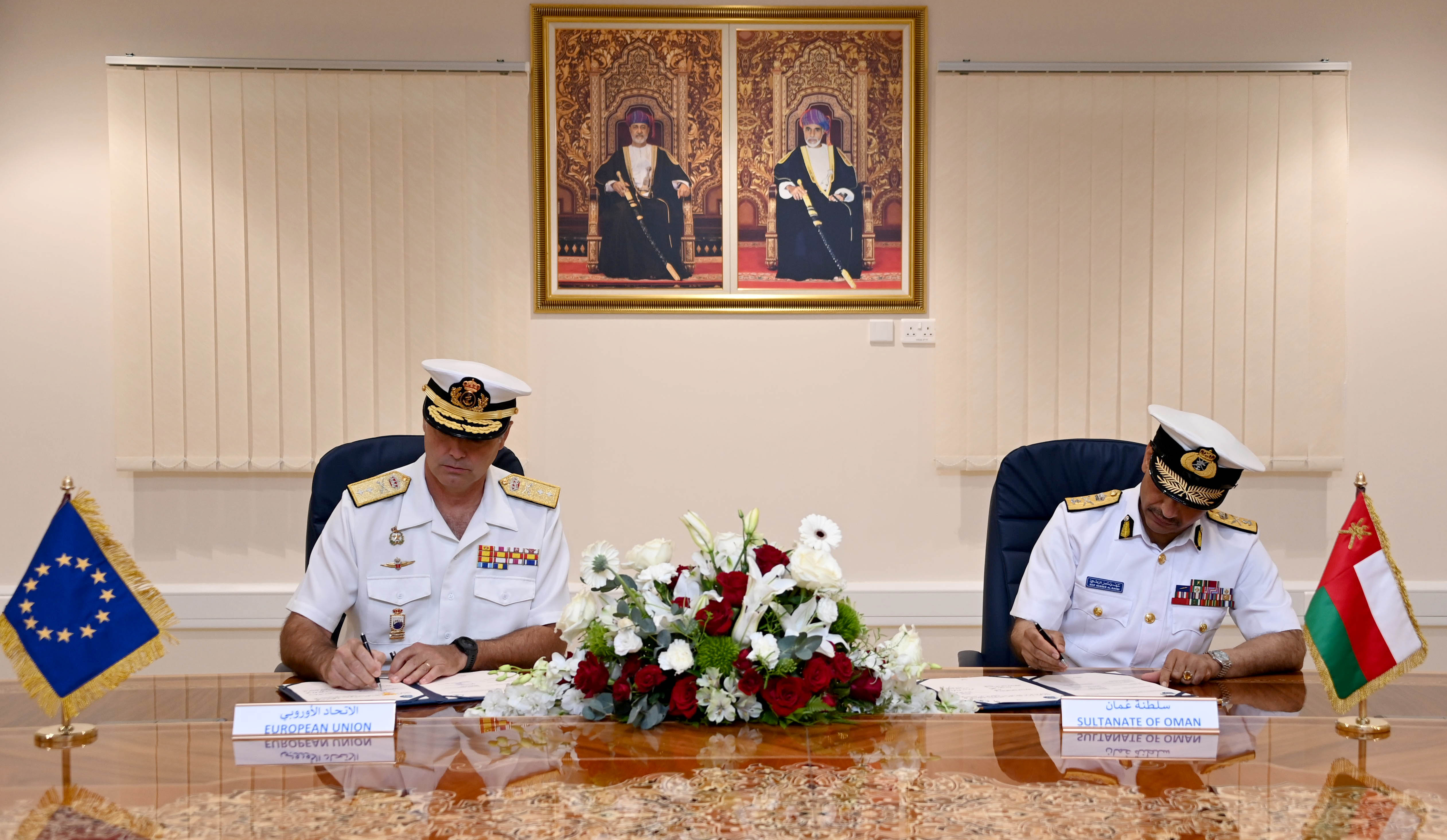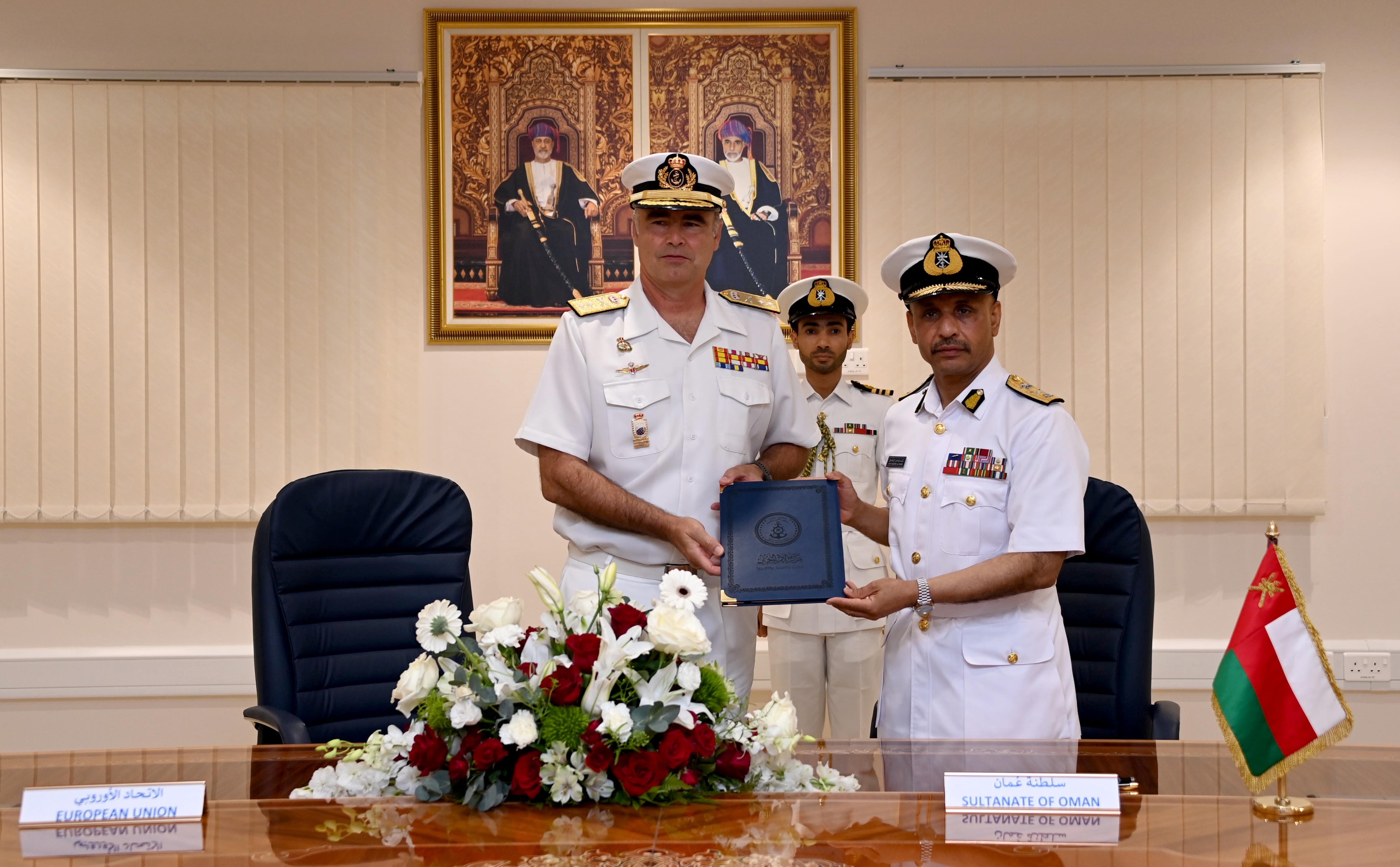 وفي إطار الزيارة تم التوقيع على بروتوكول التنسيق والتعاون بين مركز الأمن البحري و(عملية أتلانتا) التابعة للاتحاد الأوروبي، وقَّع البروتوكول عن مركز الأمن البحري اللواء الركن بحري سيف بن ناصر الرحبي قائد البحرية السلطانية العُمانية رئيس لجنة الأمن البحري، كما وقَعه عن (عملية أتلانتا) التابعة للاتحاد الأوروبي الفريق بحري إغناسيو فيلانوفيا قائد عملية أتلانتا التابعة للاتحاد الأوروبي.