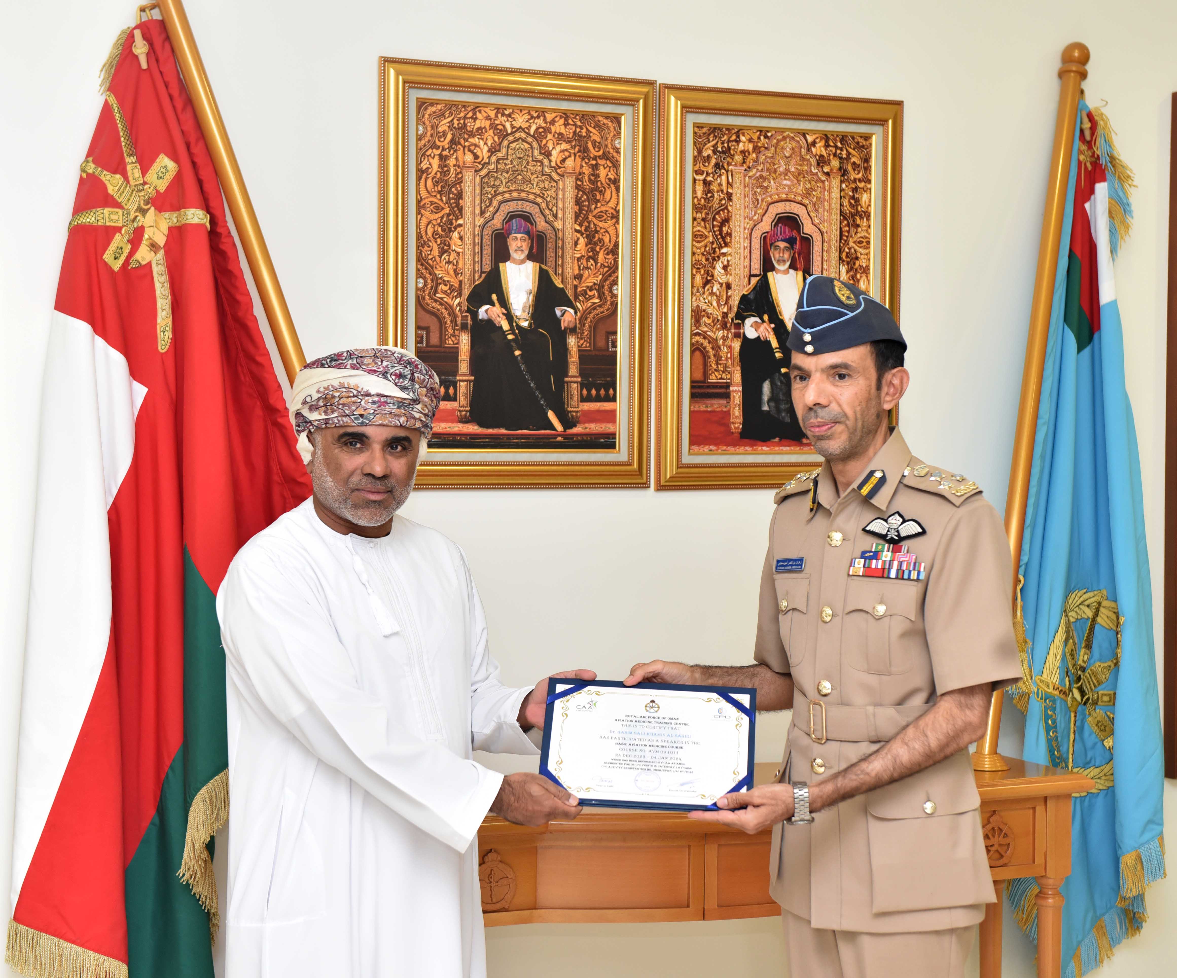 اختتم اليوم مركز تدريب طب الطيران بسلاح الجو السلطاني العُماني دورة (طب الطيران الأساسية للأطباء) من سلاح الجو السلطاني العُماني، والتي عقدت بمقر المركز بمعسكر المرتفعة، تحت رعاية العميد الركن طيار زهران بن ناصر أمبوسعيدي قائد سلاح الجو السلطاني العُماني بالإنابة.