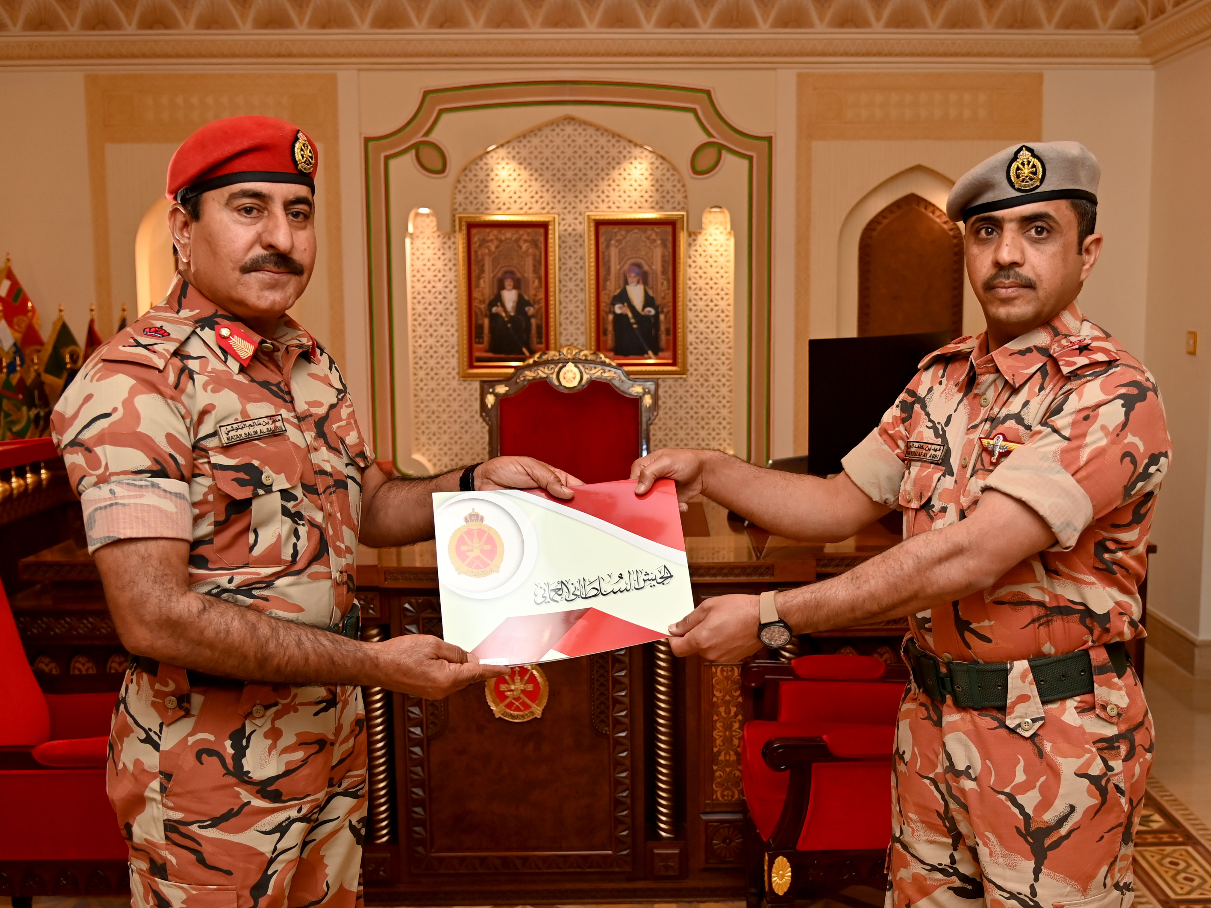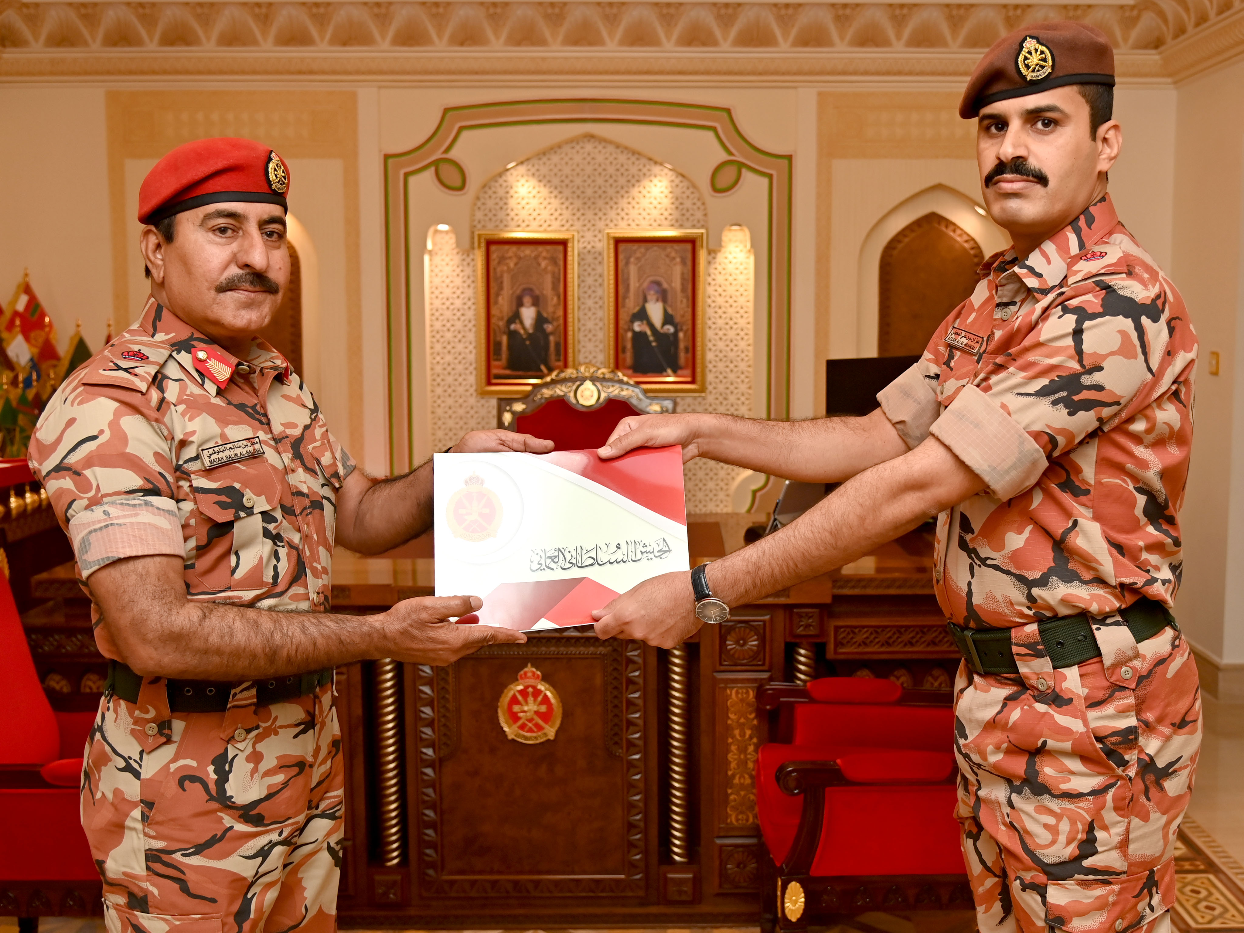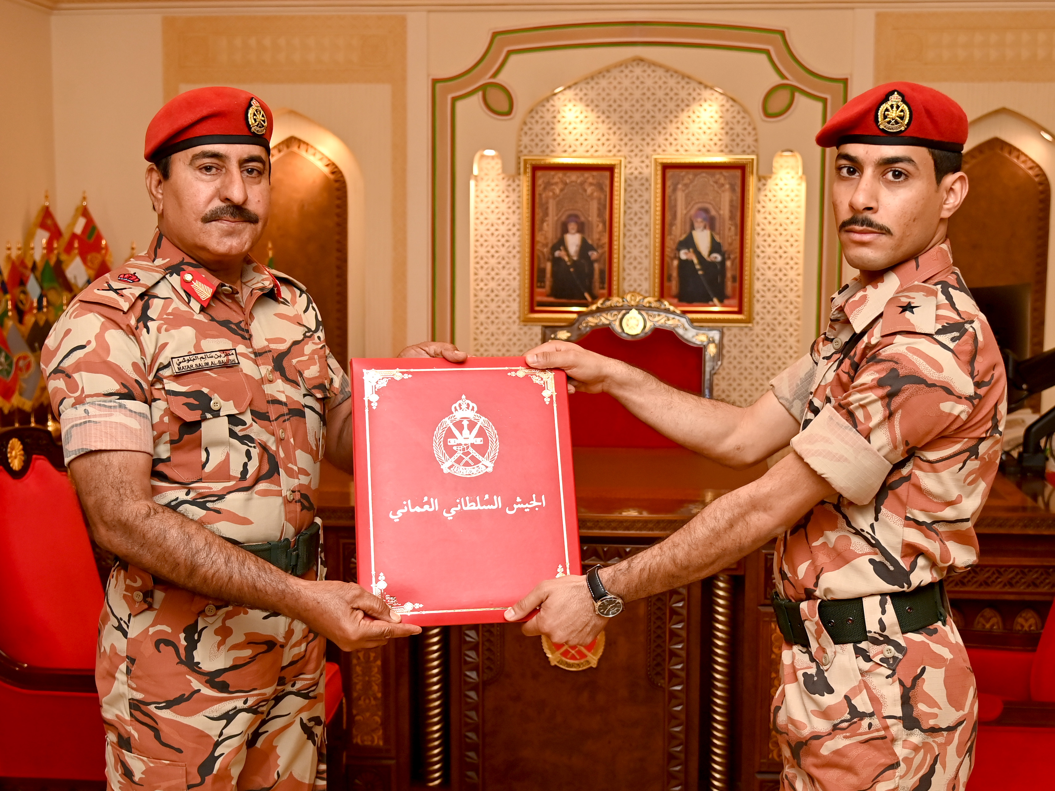 سلّم اليوم اللواء الركن مطر بن سالم البلوشي قائد الجيش السلطاني العماني بمعسكر المرتفعة شهادة البراءة السلطانية لعدد من ضباط الجيش السلطاني العماني، وقد هنأ اللواء الركن قائد الجيش السلطاني العُماني الضباط الخريجين بمناسبة تخرجهم وتلقيهم التدريب العسكري، مباركاً لهم نيل الثقة السامية الكريمة من لدن جلالة القائد الأعلى حفظه الله ورعاه .