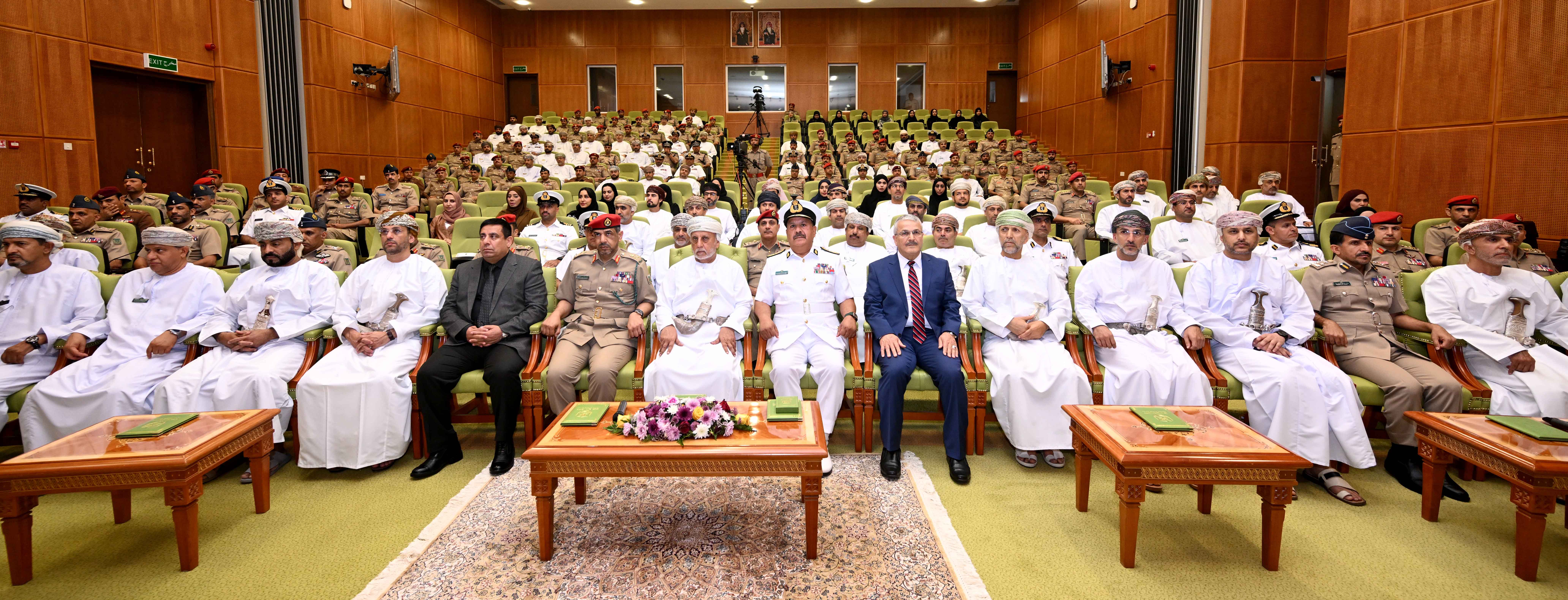 وألقى اللواء الركن بحري علي بن عبدالله الشيدي آمر كلية الدفاع الوطني كلمة قال فيها: " إن تمكين الشباب العماني وإشراكهم في صنع القرار سيسهم في إطلاق طاقاتهم الإبداعية والابتكارية، وتسخير قدراتهم في تقديم حلول عملية ومبادرات مبتكرة تعزز التنمية الوطنية المستدامة وتدعم مسارات التنويع الاقتصادي، وتواكب توجهات التحول الرقمي والاقتصاد المعرفي وتطبيقات الذكاء الاصطناعي بما يعزز تنافسية الاقتصاد الوطني.