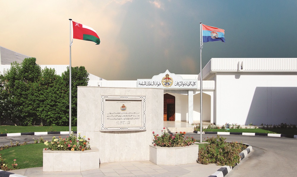 تمت الموافقة السامية على تسمية الكلية (كلية القيادة والأركان لقوات السلطان المسلحة) ، وفي يوم 30 سبتمبر 1987م افتُتِحت الدورة الأولى لكلية القيادة والأركان رسميًا تحت رعاية معالي السَّيِّد المعتصم بن حمود البوسعيدي وزير الدولة لشؤون الدفاع ـ آنذاك - وذلك في معسكر بيت الفلج ، حيث ضمت الدورة الأولى (19) دارسًا من الأسلحة الثلاثة (الجيش السلطاني العُماني ، سلاح الجو السلطاني العُماني ، والبحرية السلطانية العُماني ، وفي 11 ديسمبر 1988م تفضل حضرة صاحب الجلالة السلطان قابوس بن سعيد القائد الأعلى للقوات المسلحة ـ طيب الله ثراه - بافتتاح مبنى الكلية بموقعه الحالي في معسكر بيت الفلج ، وقد تم تجهيزه بمختلف المرافق والتسهيلات والوسائل الضرورية والمساندة لعملية التعليم والتدريب.