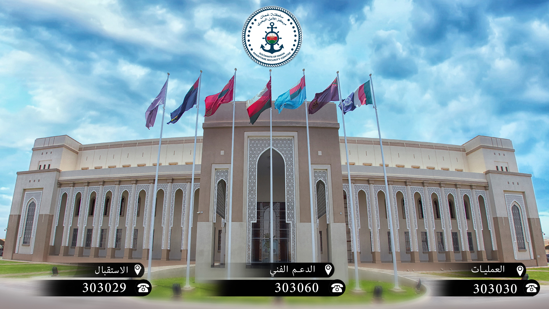 عمل المركز: يعمل مركز الأمن البحري على مدار الساعة بطاقم عُماني مكون من مختلف الأجهزة العسكرية والأمنية والمدنية المعنية بالأمن البحري ، ويتلقى المركز البلاغات عبر مختلف الوسائل والقنوات المتاحة ليتم توفير الاستجابة السريعة والإجراءات الممكنة حيالها بالتنسيق مع الجهة المعنية بكل شأن ، كما يقوم طاقم المركز وعلى مدار الـ (24 ساعة) بمراقبة المنطقة البحرية العُمانية من خلال الأنظمة والمعدات المتخصصة في هذا الشأن ، وذلك بهدف الحفاظ على تلك المنطقة آمنة مستقرة.