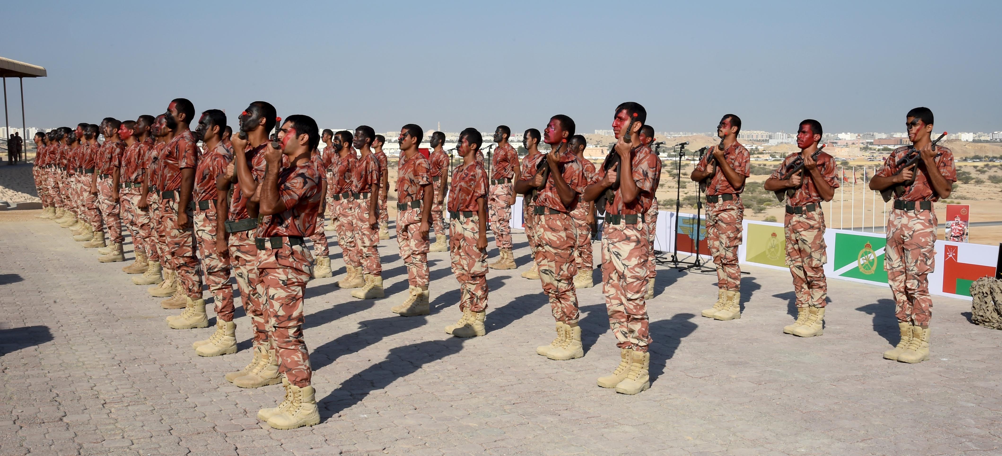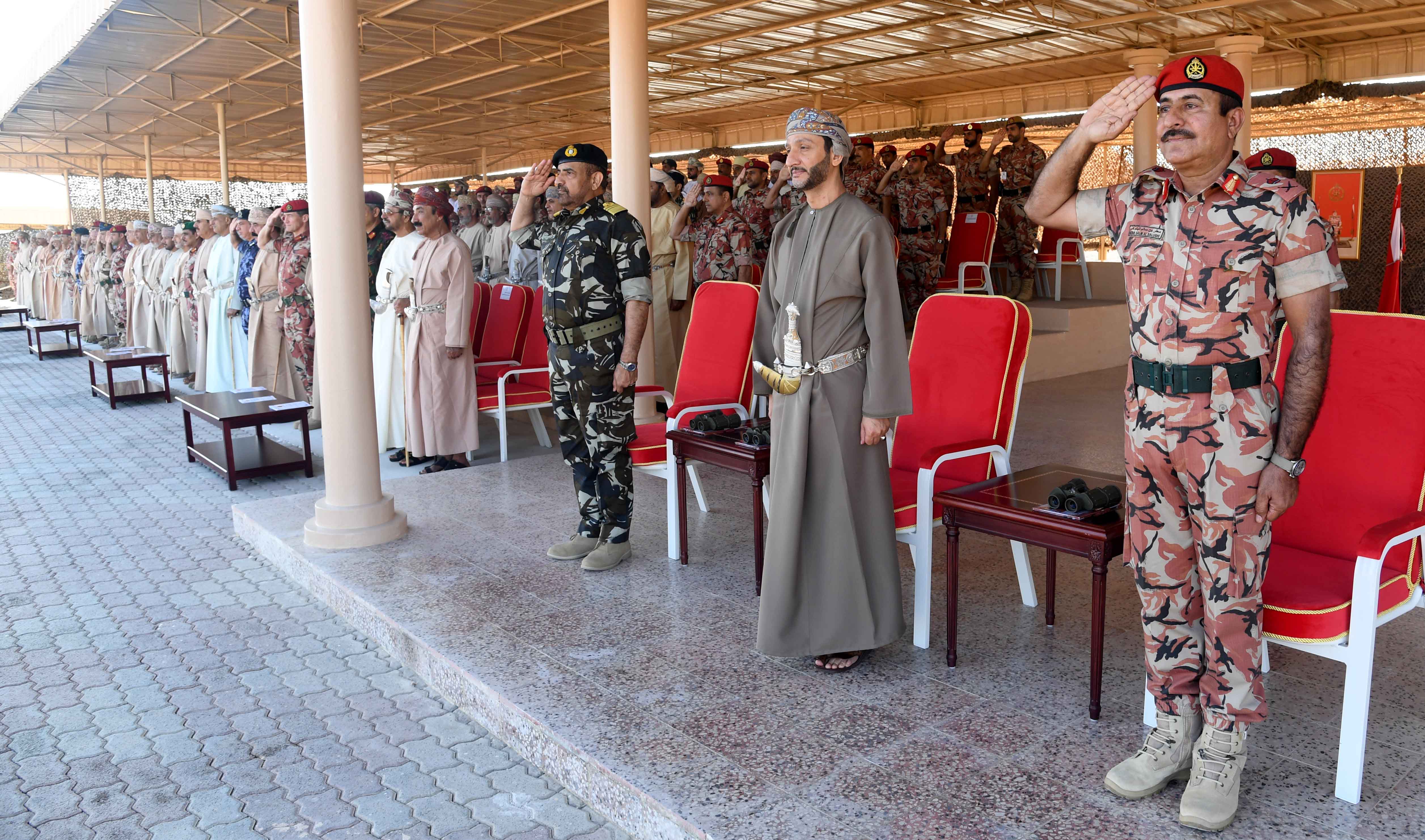 بدأ الاحتفال الذي أقيم على ميدان الاحتفالات العسكرية بمعسكر المرتفعة بالتحية العسكرية لمعالي السيد محافظ مسقط، وعزفت فرقة موسيقى الجيش السلطاني العُماني السلام السلطاني، بعد ذلك توالت فقرات الاحتفال، حيث شاهد راعي الحفل والحضور نماذج من التمارين التدريبية والعروض العسكرية والمهارات الميدانية المتنوعة التي أظهرت الكفاءة والمهارة التي يتمتع بها منتسبو الجيش السلطاني العُماني، كما شاهد الحضور عروض الفروسية والتقاط الأوتاد والتي قدمتها خيالة مدرعات سلطان عُمان، وعرضا آخر للقفز الحر قدمه فريق القفز الحر بمظلات سلطان عُمان.
