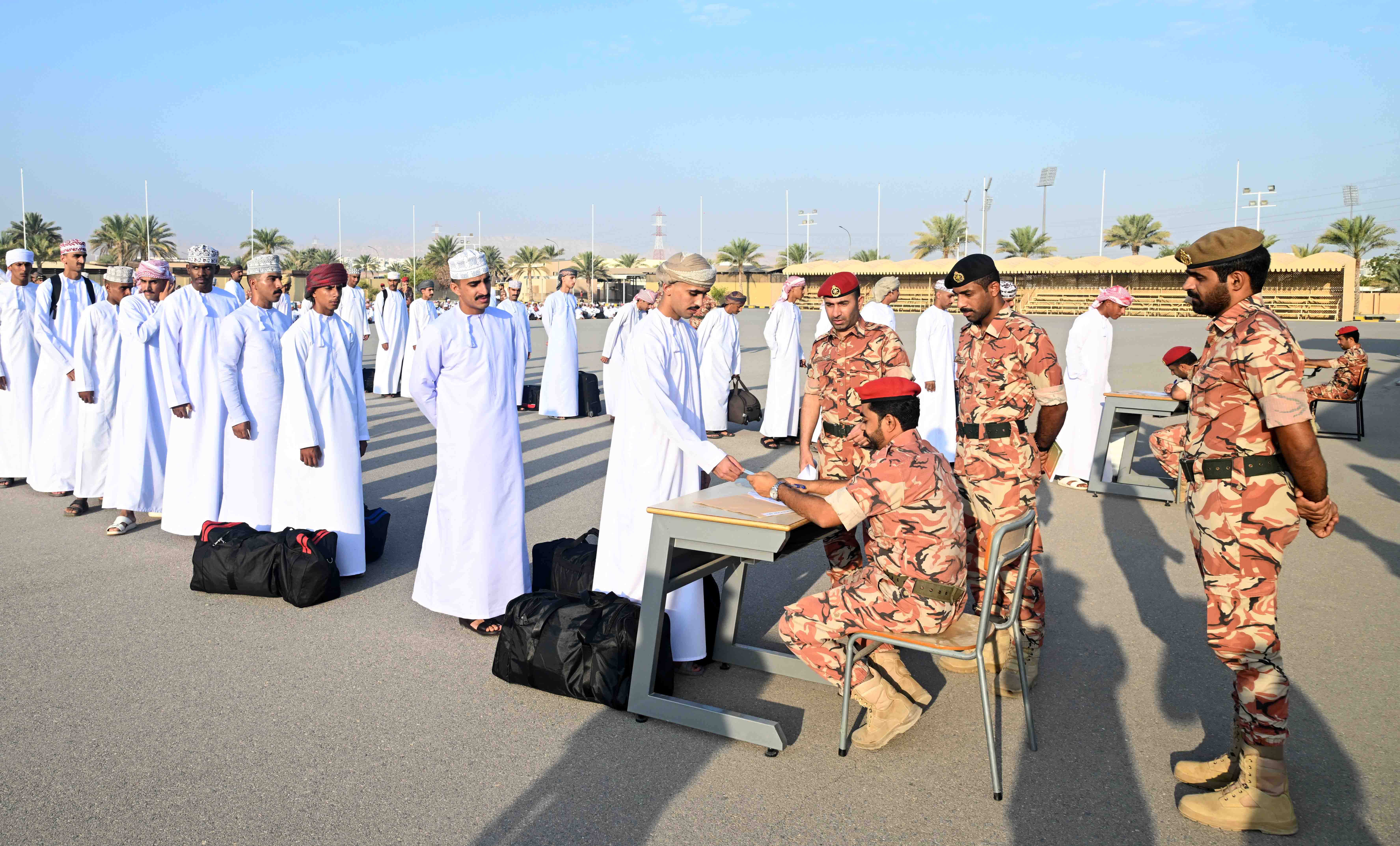 استقبل الجيش السلطاني العماني اليوم دفعة جديدة من المواطنين للتدريب العسكري والالتحاق بوحداته، يأتي ذلك استمرارا للجهود الوطنية التكاملية التي تقوم بها قوات السلطان المسلحة في استيعاب المواطنين وبالتنسيق مع وزارة العمل ، حيث سيخضع المتدربون لبرنامج التدريب العسكري الأساسي جنوداً مستجدين والانضمام إلى ميادين الشرف والواجب الوطني، وذلك بعد أن اجتازوا مراحل القبول والتقييم والاختبارات والفحوصات الطبية والبدنية التي أجريت لهم مسبقًا.