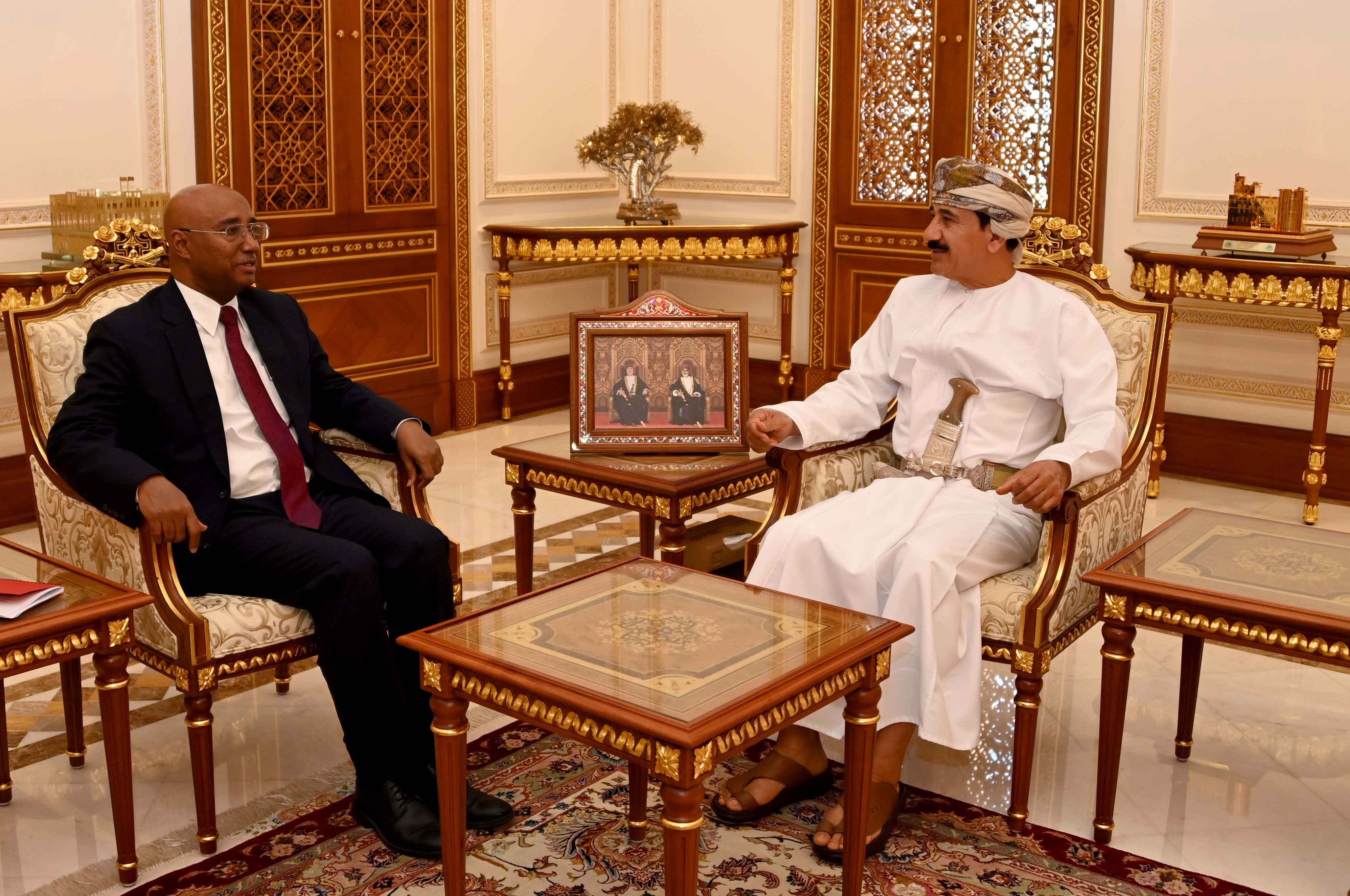 استقبل معالي الفريق أول سلطان بن محمد النعماني وزير المكتب السلطاني بمكتبه صباح اليوم سعادة صلاح الدين الحاج محمد الكندو سفير جمهورية السودان المعتمد لدى سلطنة عمان، حيث تطرق الحديث إلى مستجدات الأزمة السودانية والجهود الإقليمية والدولية المبذولة لحلها بالإضافة إلى عدد من القضايا الراهنة على الساحتين الإقليمية والدولية ، كما تم التأكيد على العلاقات الطيبة التي تجمع سلطنة عمان وجمهورية السودان الشقيقة.
