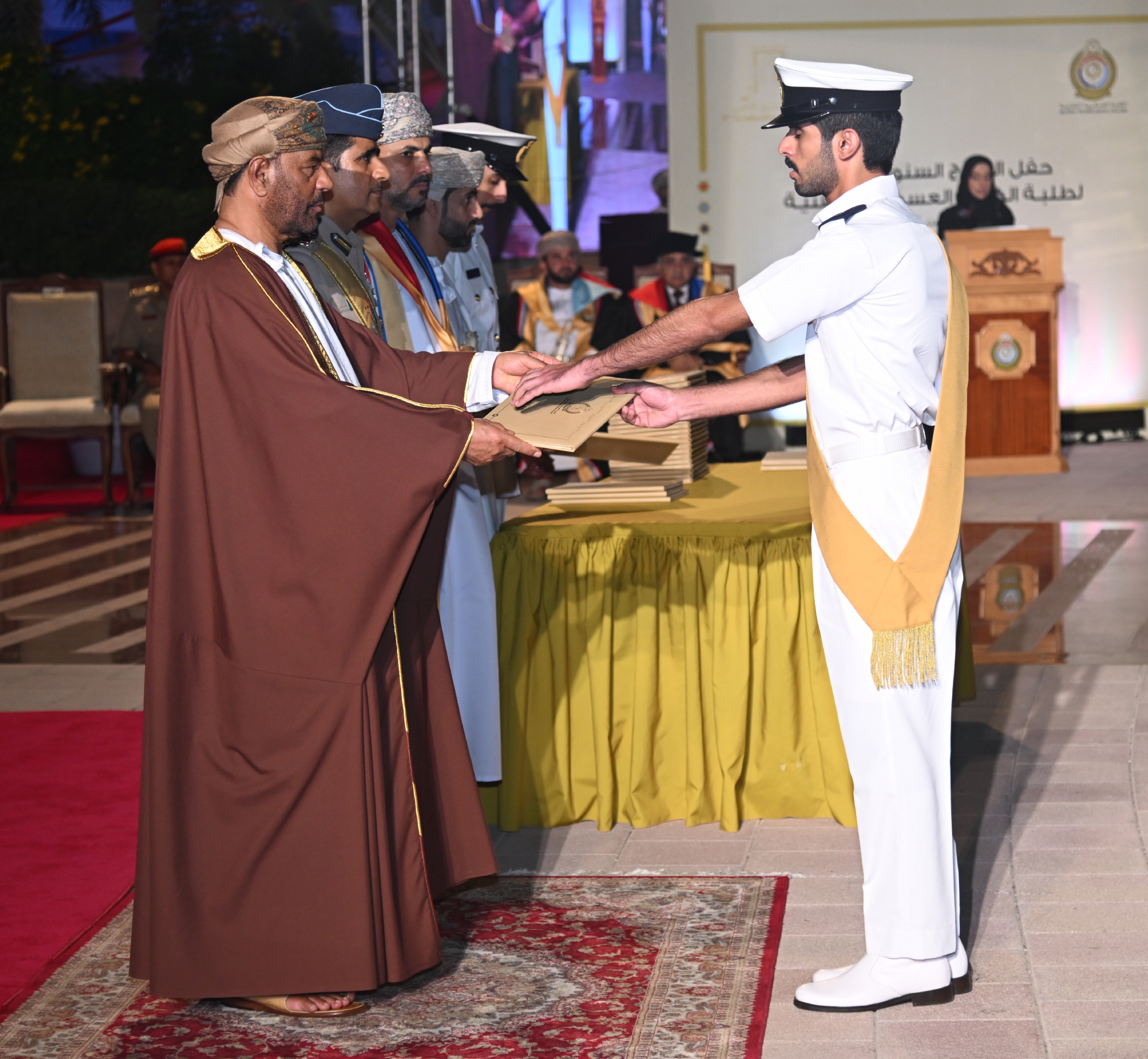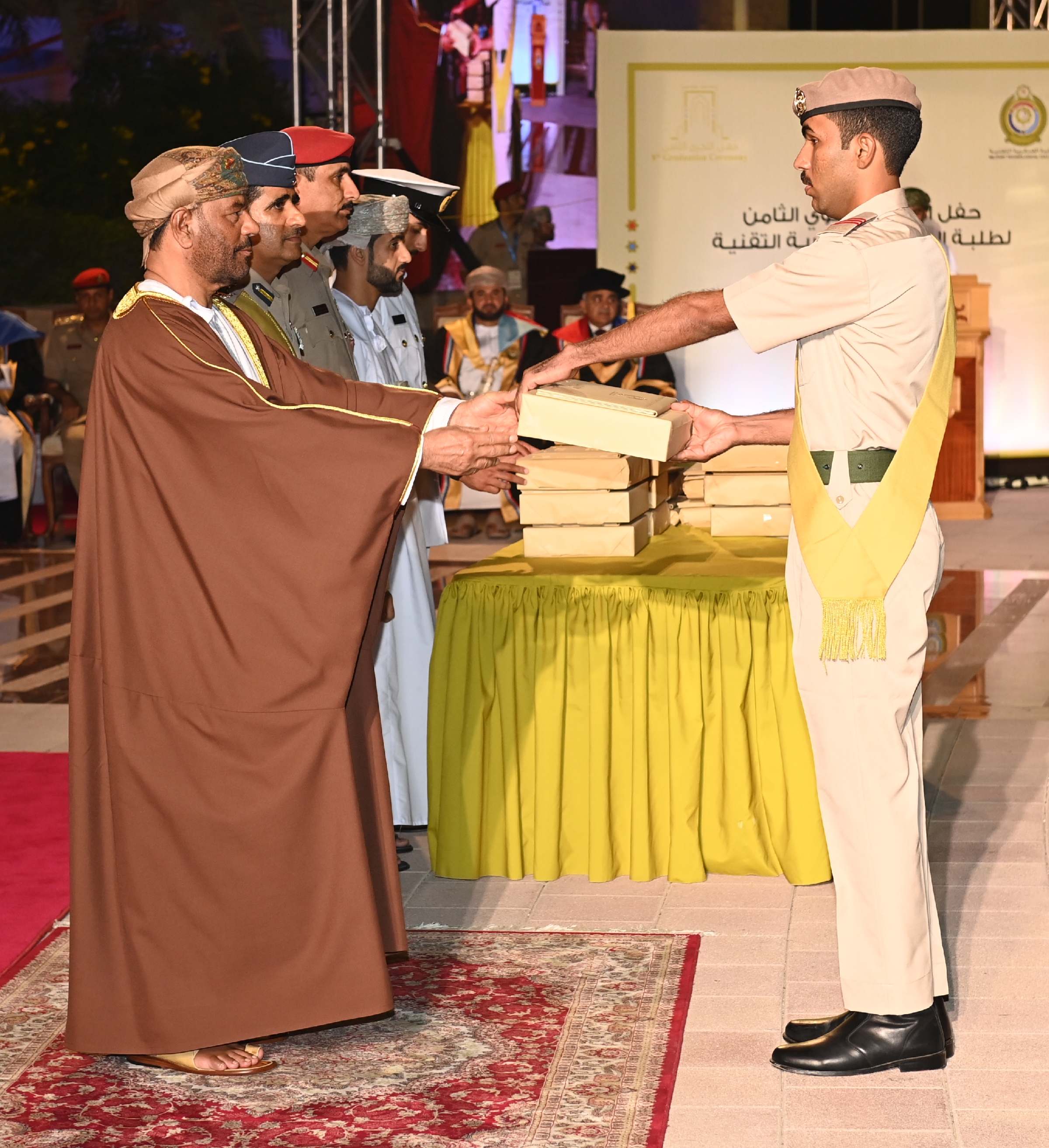 بعدها ردد الخريجون نشيد الكلية العسكرية التقنية وأدوا قسم الولاء ونداء التأييد، وهتفوا ثلاثا بحياة حضرة صاحب الجلالة السلطان هيثم بن طارق المعظم القائد الأعلى حفظه الله ورعاه. عقب ذلك سلّم العميد الركن جوي (مهندس) محمد بن عزيز السيابي عميد الكلية العسكرية التقنية شهادات التخرج للطلبة خريجي شهادة الدبلوم المتقدم والدبلوم لعدد من التخصصات الهندسية.