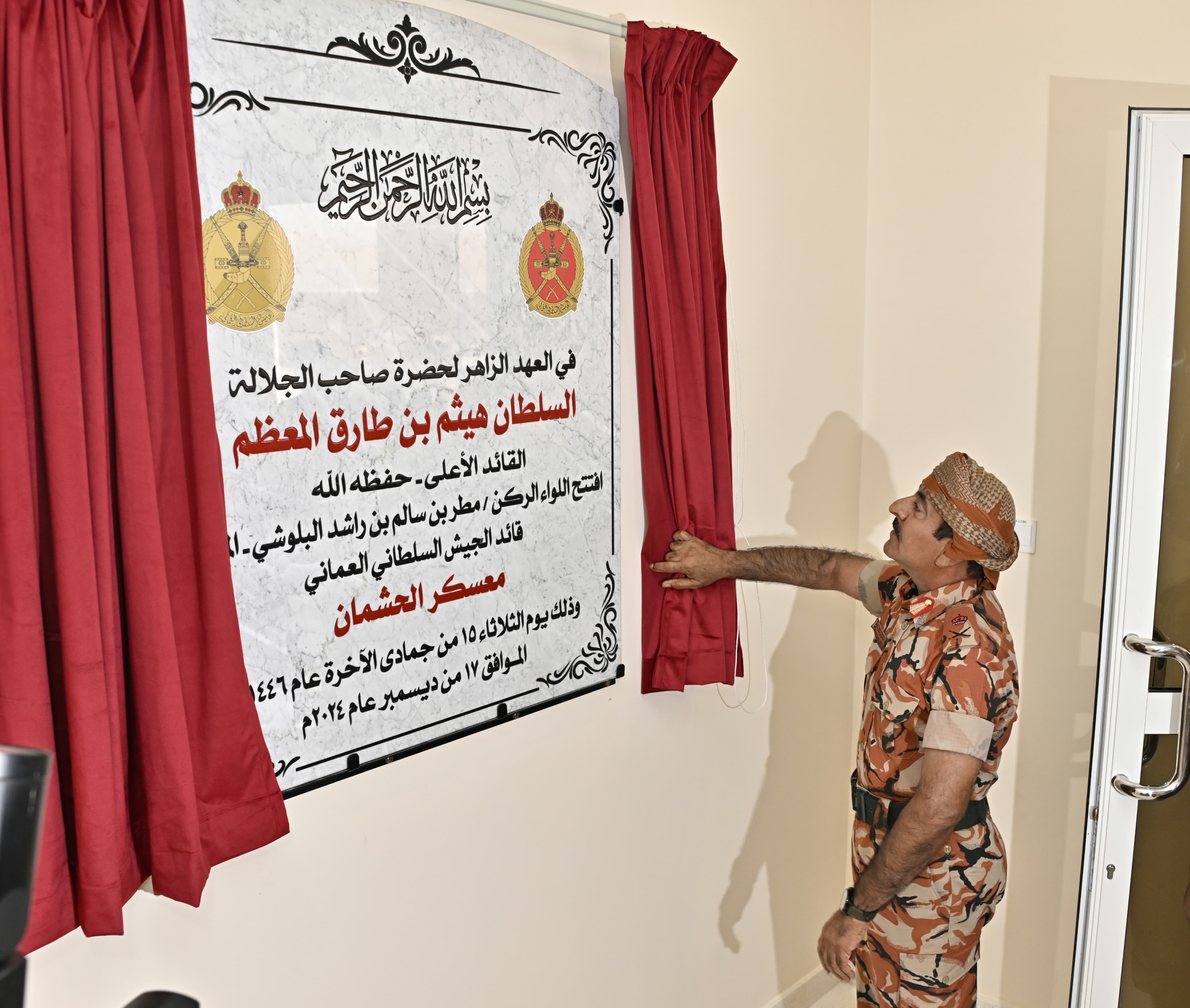 في إطار ما تنتهجه أسلحة قوات السلطان المسلحة والدوائر الأخرى بوزارة الدفاع من خطط التحديث وبما يتماشى مع متطلبات التطوير من برامج الاستدامة فيما يضطلع به الجيش السلطاني العماني بمختلف وحداته وتشكيلاته من أدوار ومهام وطنية احتفل الجيش السلطاني العُماني اليوم بافتتاح ( معسكر الحشمان ) للواء حرس الحدود ، وذلك تحت رعاية اللواء الركن مطر بن سالم البلوشي قائد الجيش السلطاني العماني.