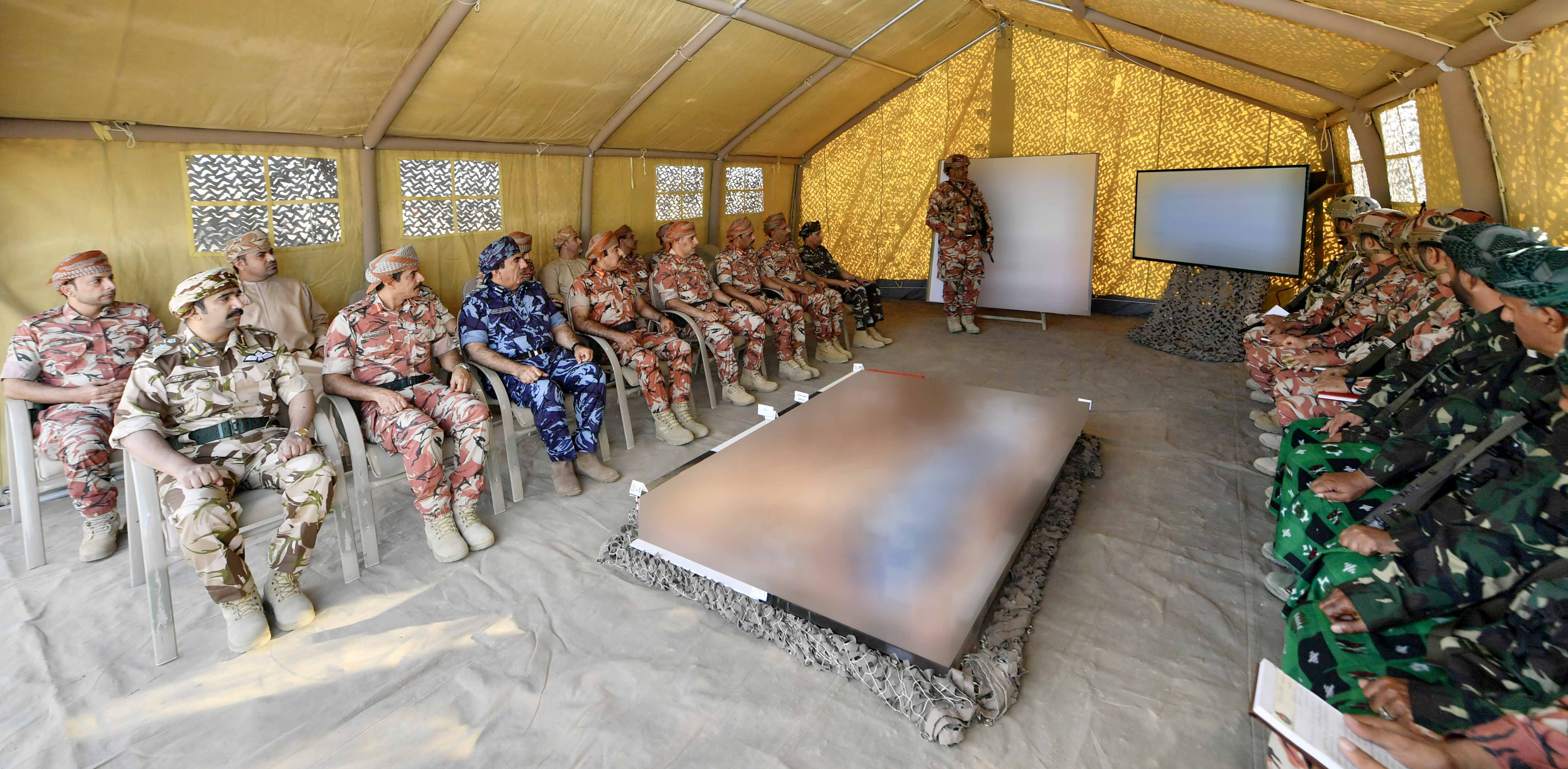 حضر البيان العملي لتمرين (الدرع الحصين / ٢) عدد من كبار الضباط بقوات السلطان المسلحة والأجهزة العسكرية والأمنية الأخرى.