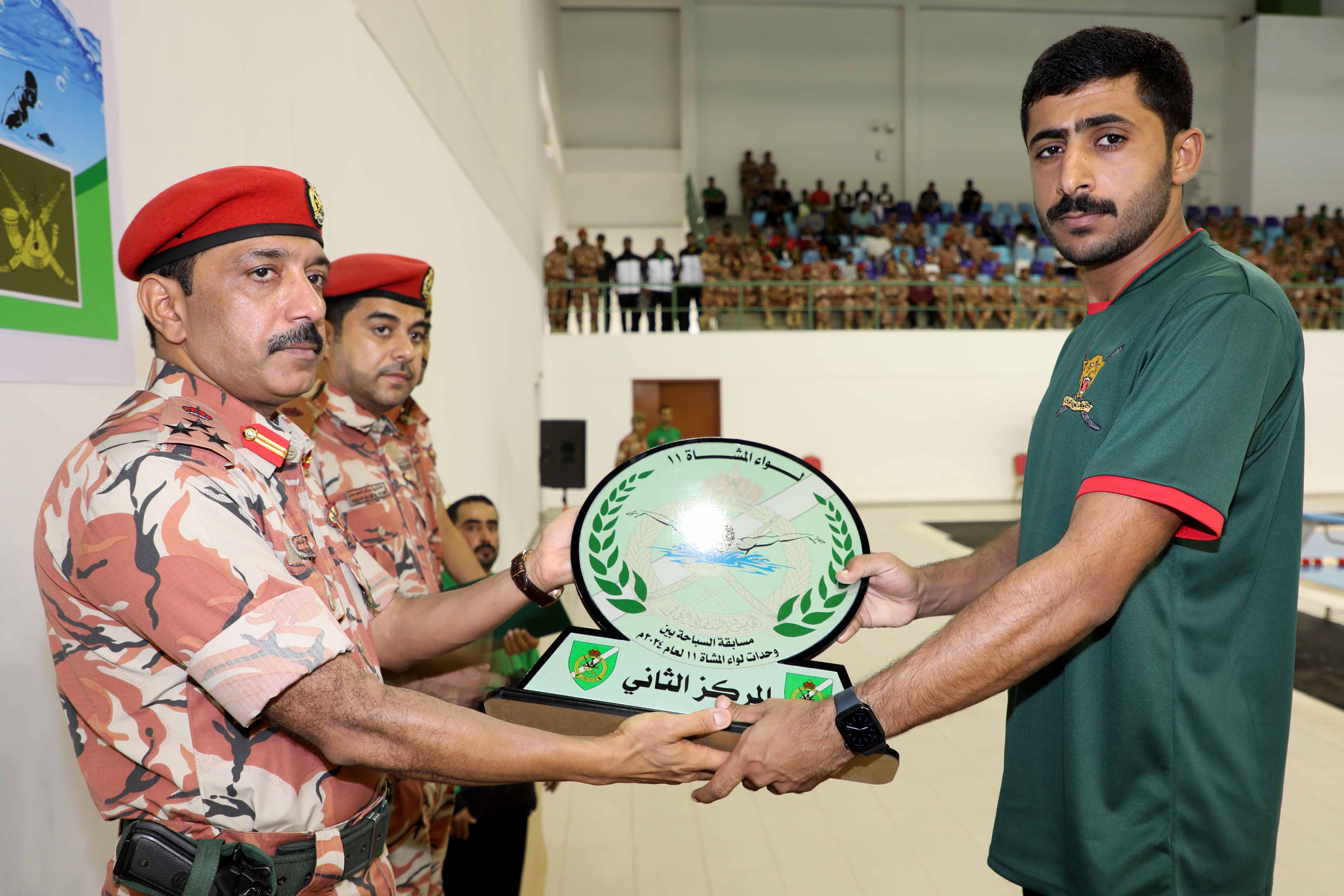 وعلى مستوى المسابقات الجماعية: حقق المركز الأول في مسابقة (4×50 متر سباحة تتابع متنوع) فريق كتيبة جنوب عُمان، وجاء في المركز الثاني فريق قوة الحدود، وفي مسابقة (4×50 متر سباحة صدر) أحرز فريق كتيبة استطلاع عُمان المركز الأول، وحصل فريق كتيبة جنوب عُمان على المركز الثاني.