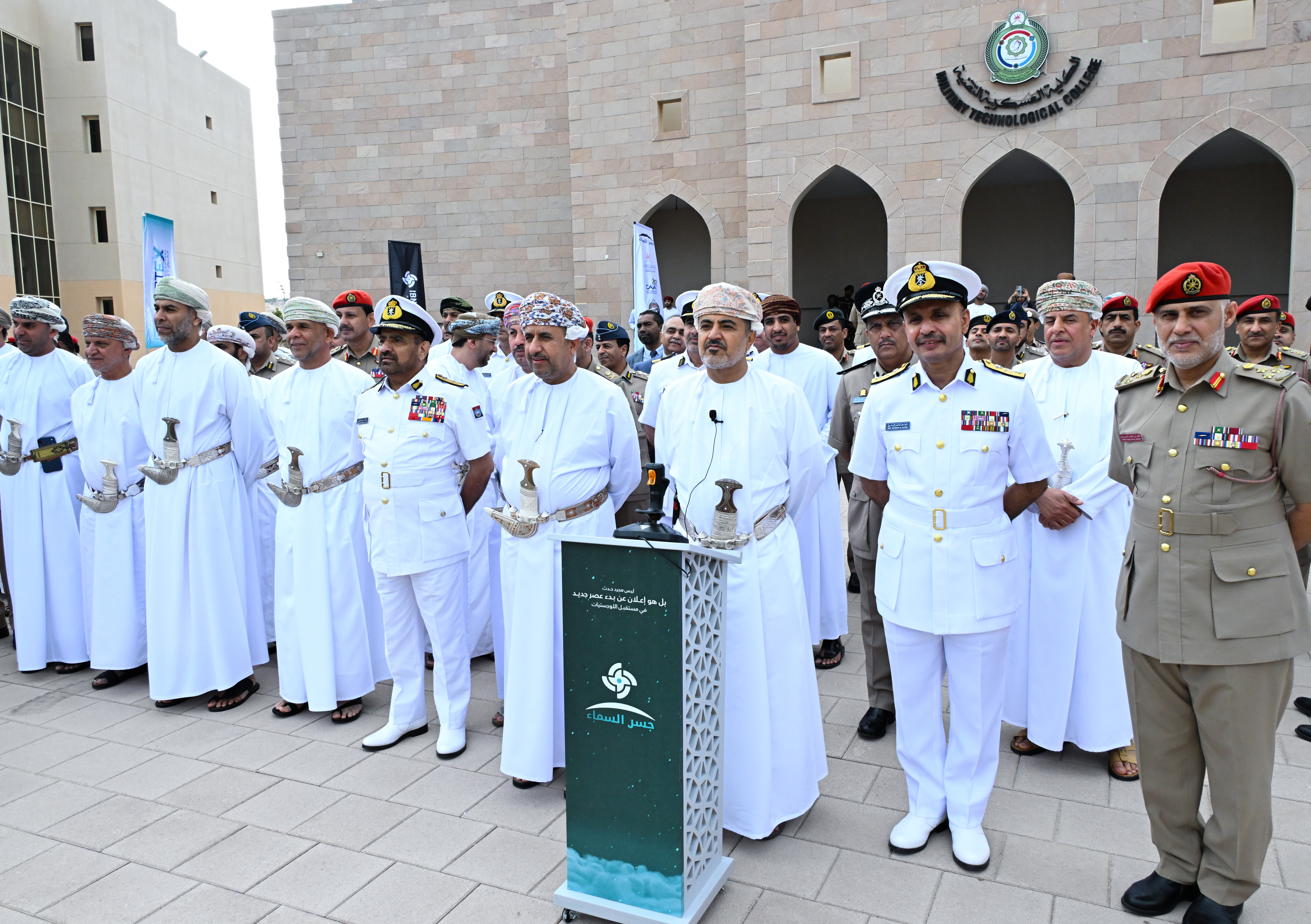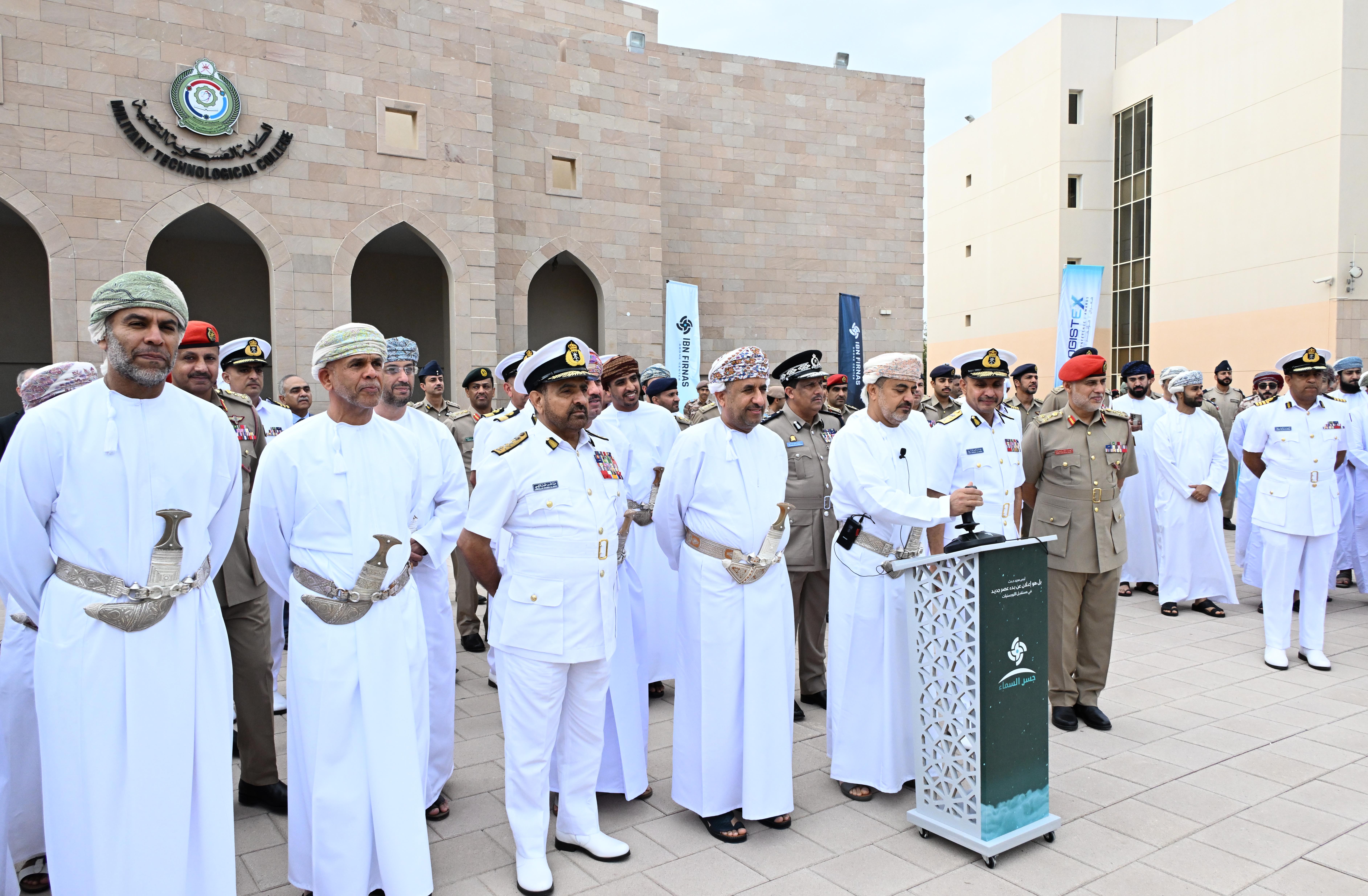 شاركت اليوم الكلية العسكرية التقنية في حفل تدشين إطلاق الطائرة المسيرة (سهم) والتي يأتي ضمن فعالية (جسر) بالتعاون مع وزارة النقل والاتصالات وتقنية المعلومات وشركة مركز ابن فرناس للطائرات المسيرة، تحت رعاية معالي المهندس سعيد بن حمود المعولي وزير النقل والاتصالات وتقنية المعلومات.