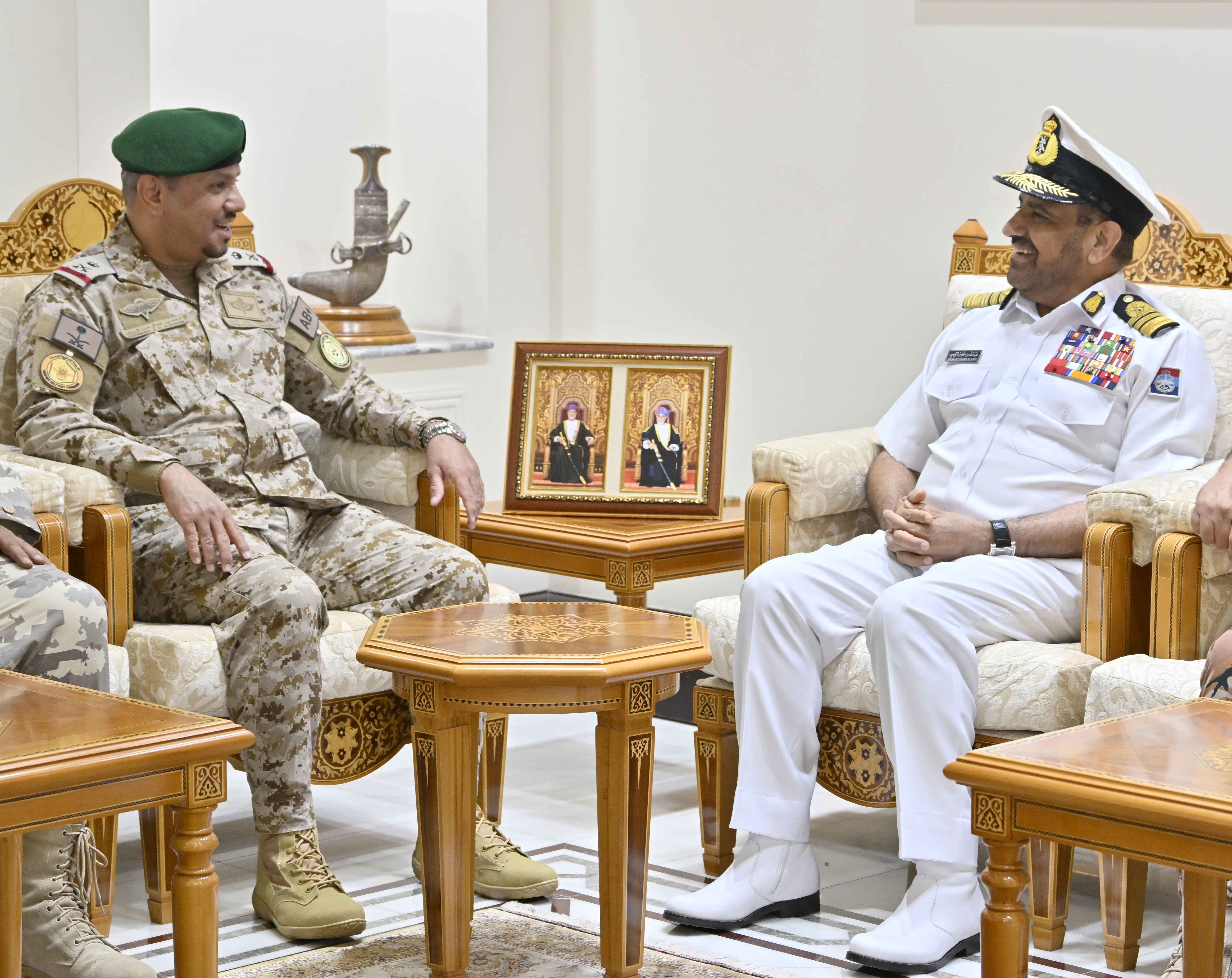 استقبل الفريق الركن بحري عبدالله بن خميس الرئيسي رئيس أركان قوات السلطان المسلحة بمكتبه بمعسكر المرتفعة اليوم اللواء الركن محمد بن عبدالرحمن الرويس قائد قوات درع الجزيرة والوفد العسكري المرافق له.