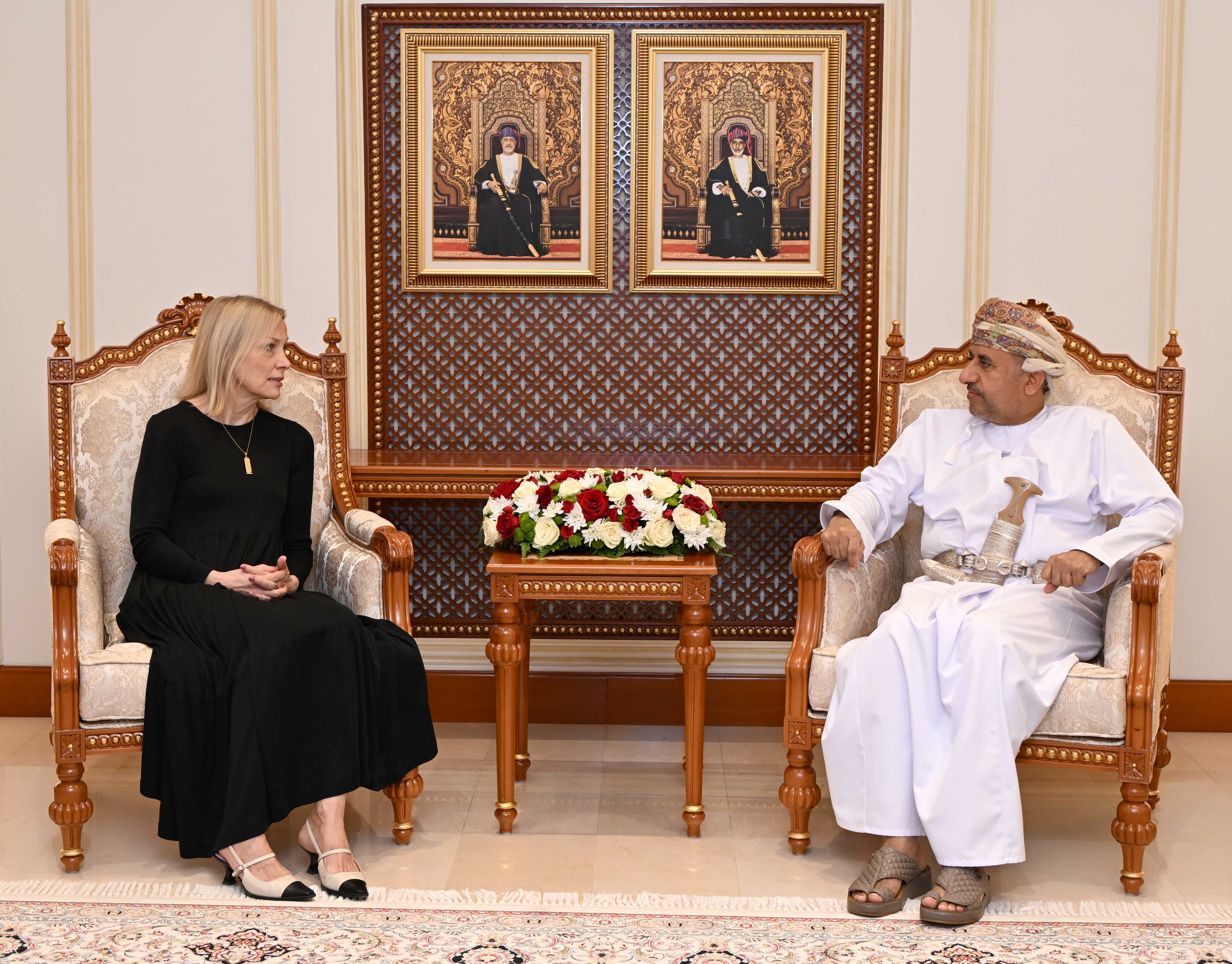 استقبل معالي الدكتور محمد بن ناصر الزعابي أمين عام وزارة الدفاع اليوم بمكتبه بمعسكر المرتفعة سعادة إنغريد آمر سفيرة جمهورية أستونيا المعتمدة لدى سلطنة عُمان.
